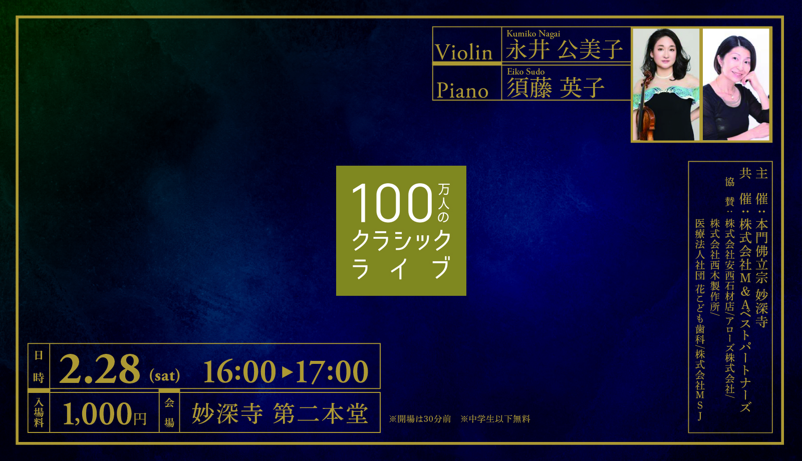 気軽にクラシックライブを聴いてみませんか?(2月開催のご案内)