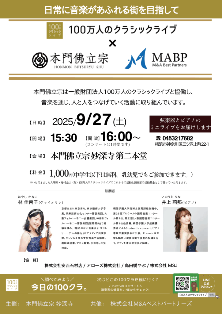 人々が心を落ち着ける場所である「お寺で聴くクラシック音楽」はコンサートホールとは異なる違った響きと荘厳さがあります。