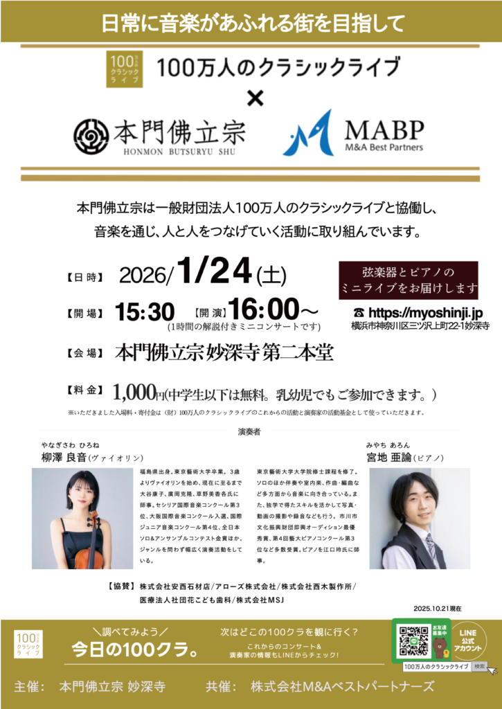 【100万人のクラシックライブ】は気軽に、クラシック音楽の生演奏による体験と感動をお届けします。