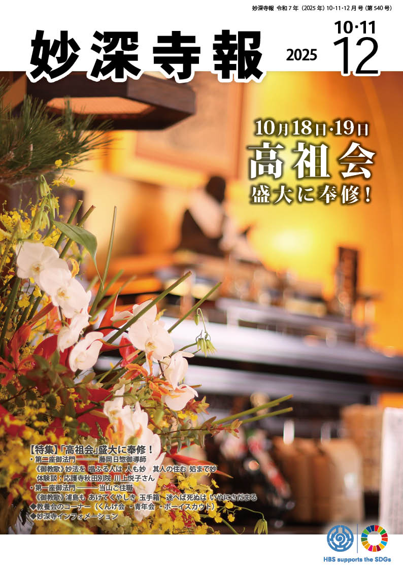 毎月発行される無料の月刊誌をこちら(PDF)から読むことができます。妙深寺のひと月の活動内容やこれからのお知らせなど情報が盛りだくさん。