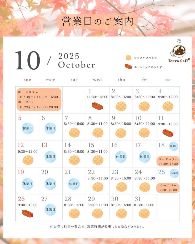 ※お寺の行事に合わせ、臨時休業の場合あり。